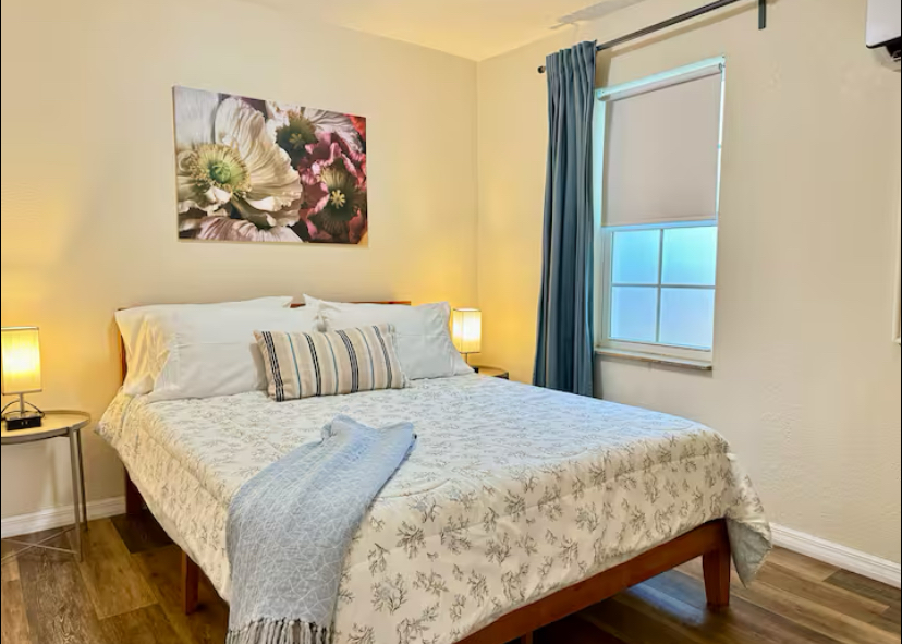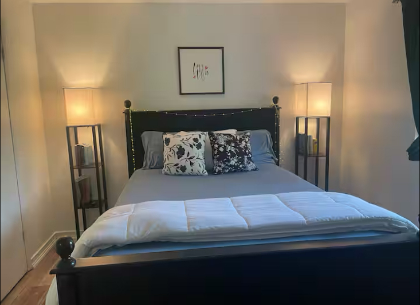 Private with a queen bed and a private full bathroom.